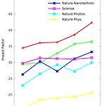 다음과 같은 자료가 있다고 생각해보자. 가 나 1 1.23 2.11 2 1.73 1.94 가장 왼쪽에 있는 (열)세로줄을 가로축으로 하고, 2번, 3번 세로줄의 값을 세로축으로 하면서 자료의 제목인 '가'와 '나'를 범례로 표기하고 싶을 때는 어떻게 하면 좋을까. 그래프를 그려주는 다양한 프로그램이 있지만 그 중에서 gnuplot을 이용해서 어떻게 하는 지 알아보자. 요전에 광학, 나노과학 등의 분야 학술지의 영향력 지수를 그래프로 보인 글을 썼었다 (이어가기). 그 때 쓴 gnuplot 코드는 다음과 같다. #!/usr/bin/gnuplot # Journal impace factor # png reset set terminal pngcairo size 1000,1300 enhanced font 'Ver..